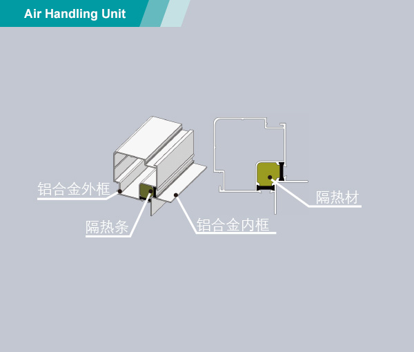 z6·人生就是博新一代MAH组合式空气处理机,艾洛斯(Aiolos)系列,采用防冷桥铝合金框架结构设计,面板与框架为压扣连接方式。
